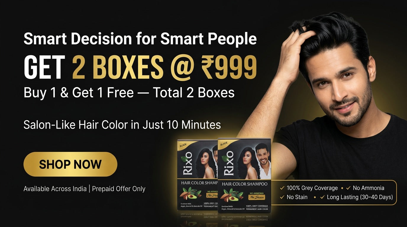 Rixo black hair color shampoo | guaranteed no stain on skin | 100% grey coverage | buy 1 get 2 & 1 surprise gift