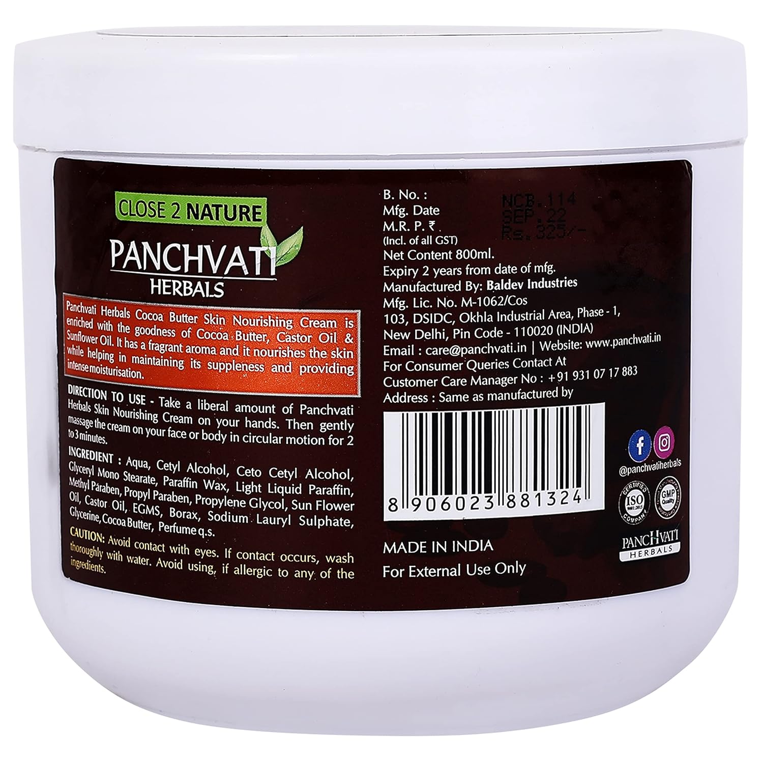 Panchvati Herbals Cocoa Butter Skin Nourishing cream is enriched with the goodness of cocoa butter, castor Oil & Sunflower Oil. It has a fragrant aroma and it nourishes the skin while helping in maintaining its suppleness and providing intense moisturisation