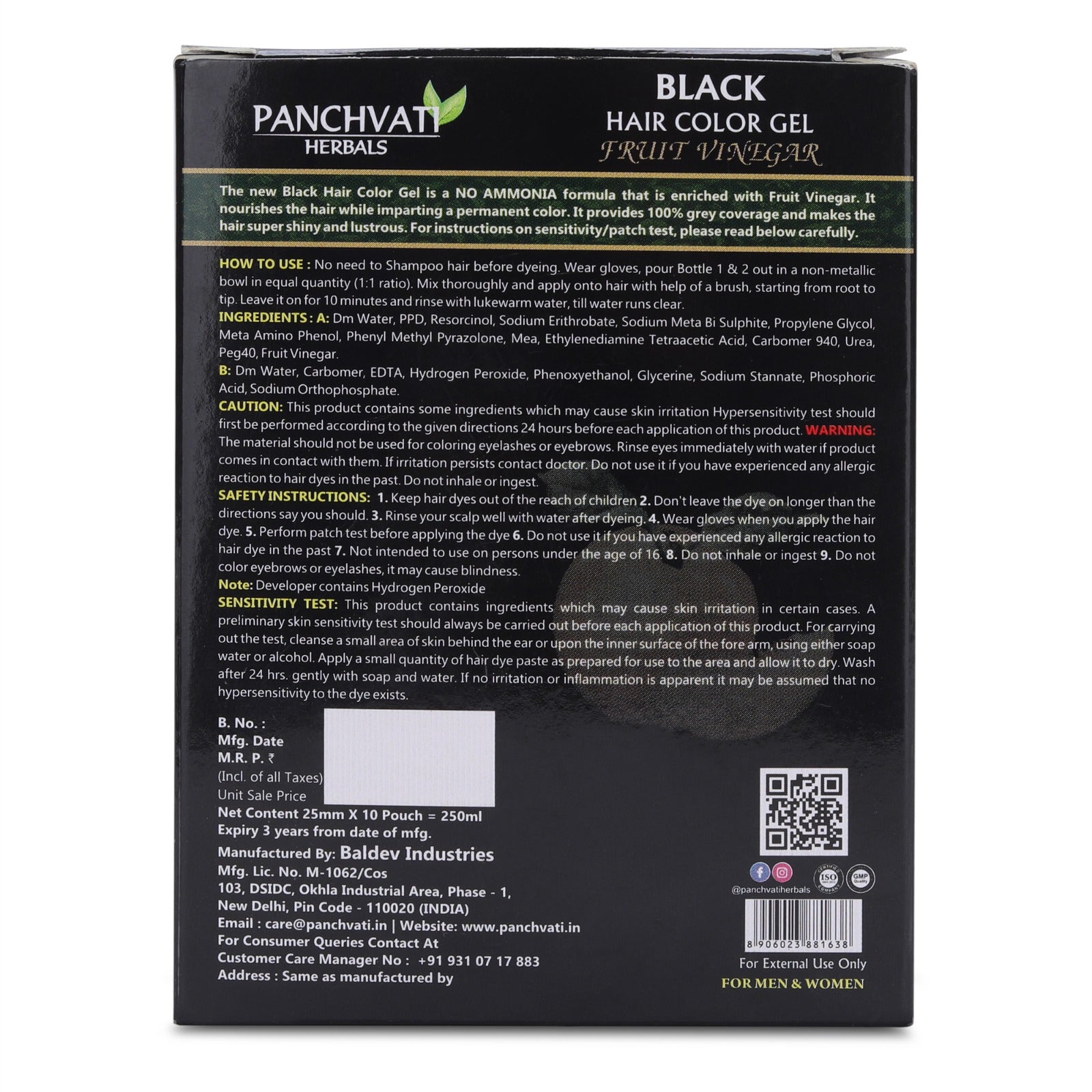 The new Black Hair Color Gel is a NO AMMONIA formula enriched with Fruit Vinegar. It nourishes the hair while imparting a permanent color. It provides 100% grey coverage and makes the hair shiny and lustrous. For instructions on sensitivity/patch test, please read below carefully.